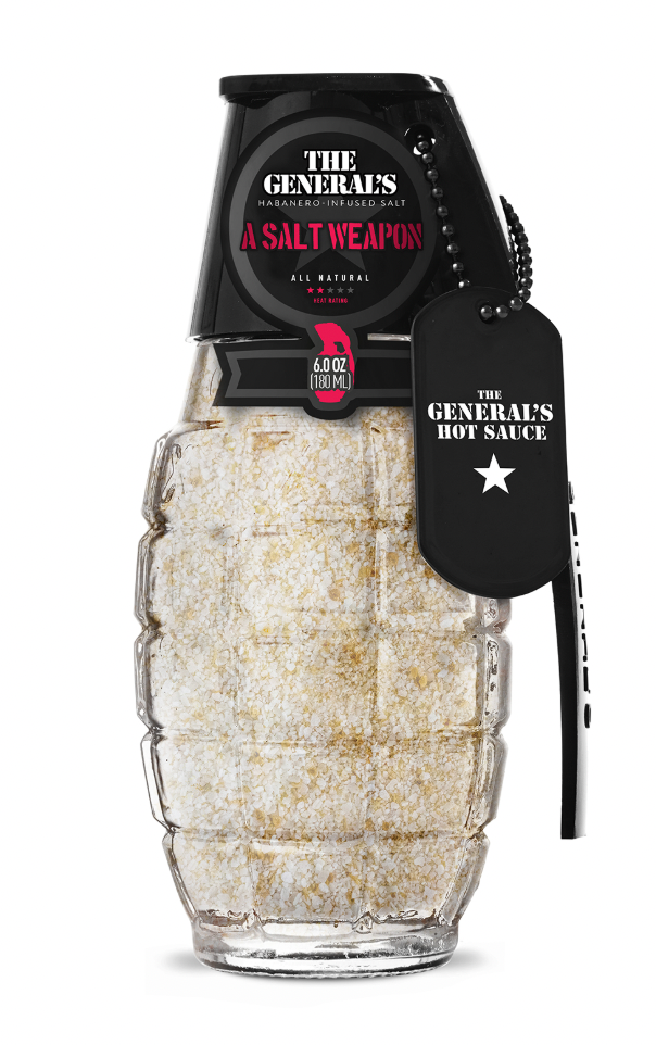 A Salt Weapon: All-natural, non-iodized sea salt mixed with the same sun-dried habanero mash that makes Maple Mayhem so great. No fillers or additives. The Atlantic provides the salt, our American-grown habanero peppers provide the heat, and together they make one powerful duo. Great on salads, tacos, popcorn, or on the rim of your Margarita or Bloody Mary glass. Medium heat. ⭐⭐/ 5 heat level.